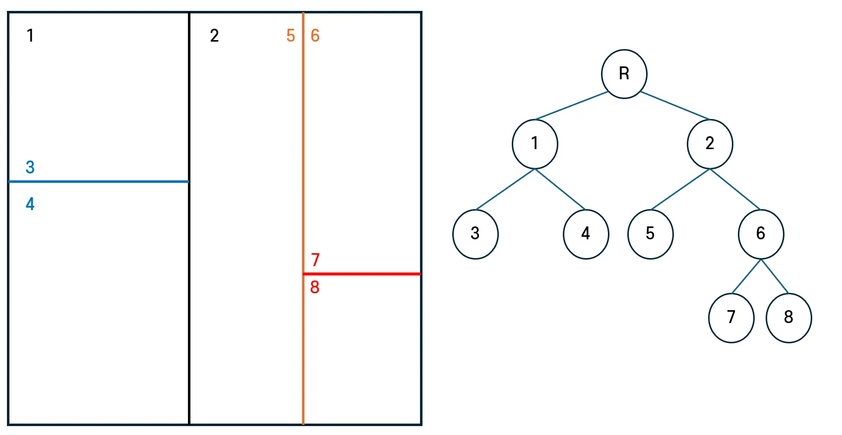 분할 위치를 기준으로 두 개의 새로운 공간을 생성해야 한다. 이때, 기존 노드의 꼭짓점을 활용하여 자식 노드의 좌상단(TL)과 우하단(BR) 좌표를 계산할 수 있다.