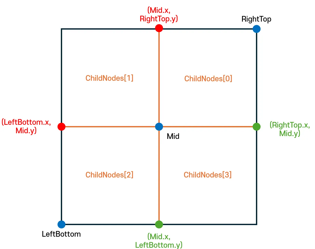 - 분할 영역의 좌하단(LeftBottom)과 우상단(RightTop)을 나타내는 오브젝트를 생성하고, 이미 생성된 RootNode값이 있으면 그 위치로 배치한다.