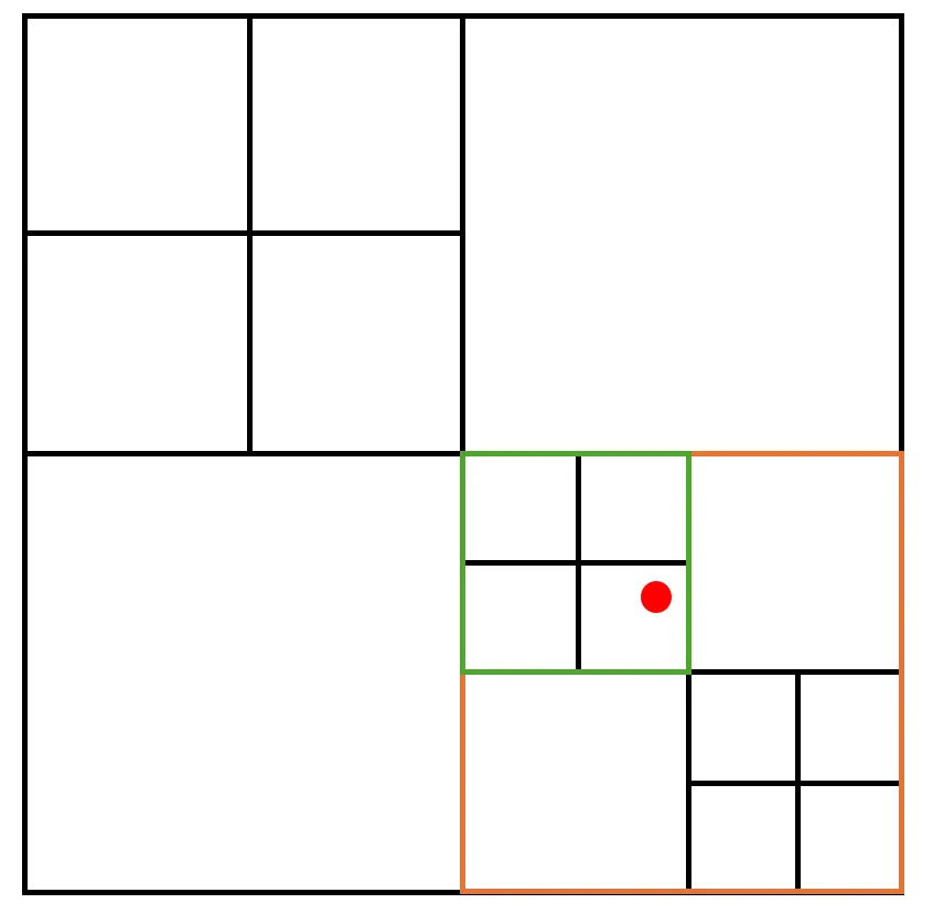 - 예를 들어, 플레이어가 우측 하단 영역에 있다면 우측 하단 영역의 “자식 노드들”만 타고 내려가면 된다.