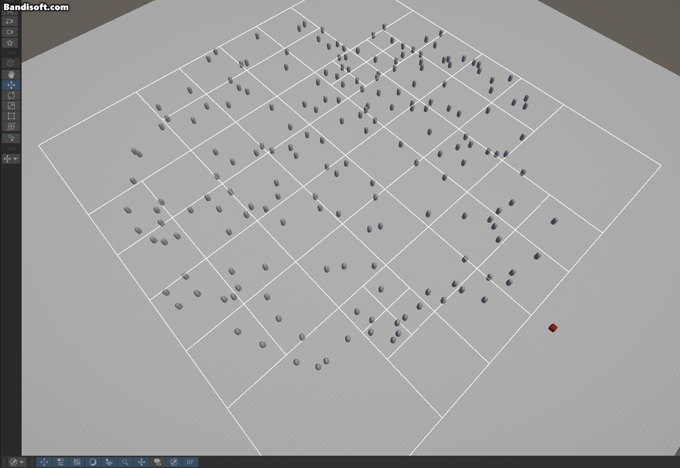플레이어(빨간색 박스)가 속한 노드의 객체만 활성화하여 불필요한 연산이 처리되지 않도록 구현하였다.