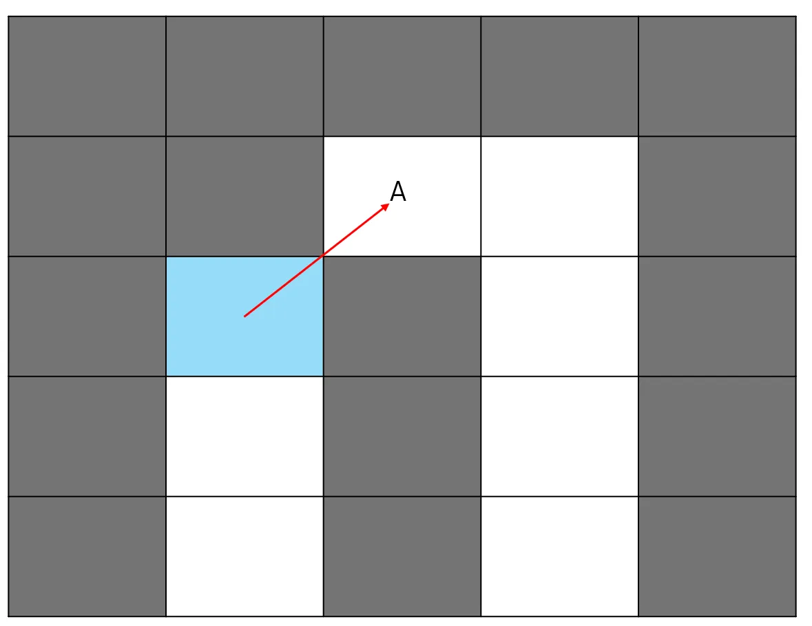 예를 들어, 현재 파란색 노드에서 오른쪽 위 방향(↗)에 있는 A 노드로 이동하려고 한다면, moveDir의 값은 (-1, +1)이 된다. 이때 이동이 유효한지 확인하기 위해 다음 두 위치를 검사해야 한다.
