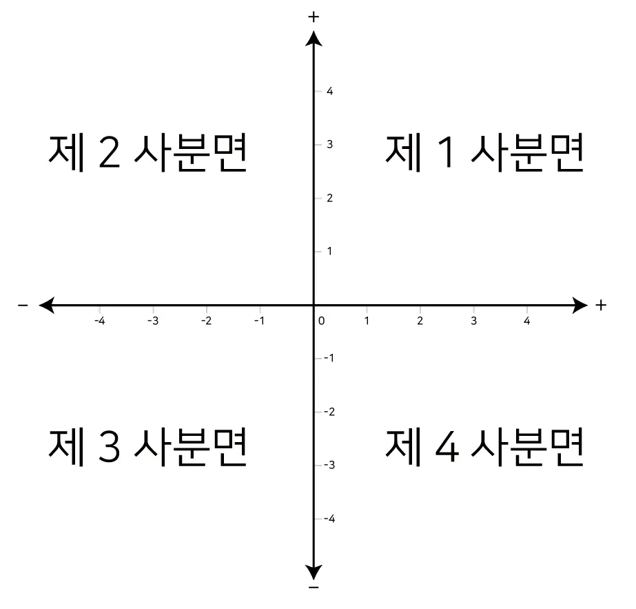 - 데카르트 좌표계의 한 원소는 곱집합과 동일하게 순서쌍$(x,y)$로 표현하며 좌표라 부른다.