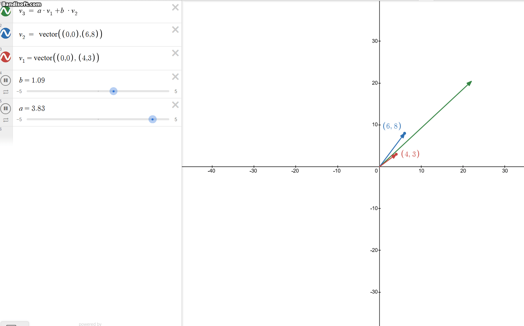 - 벡터 하나에 대해 스칼라 덧셈도 분배된다. $(a+b)\vec v = a\vec v+b\vec v$