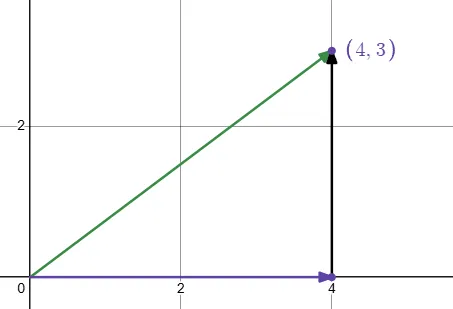 $$ ||\vec v|| = \sqrt{4^2 + 3^2} = 5 $$