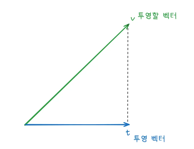 이는 $\cos \theta = \frac{인접변}{빗변}$이라는 정의에 따라, 인접변이 투영 벡터의 크기$|\vec t|$, 빗변이 $|\vec v|$가 되기 때문이다.