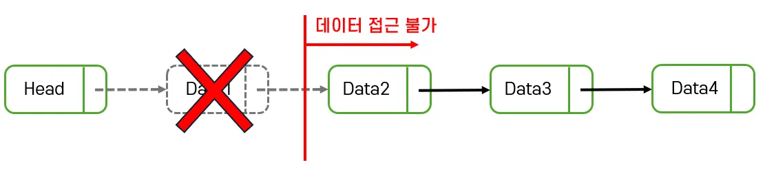 따라서 삭제하려는 노드가 어떤 노드를 가리키고 있었는지(다음 노드의 포인터)를 저장하지 않은 상태에서 곧바로 삭제하면, 그 뒤에 연결되어 있던 노드들의 정보에 접근할 수 없다.