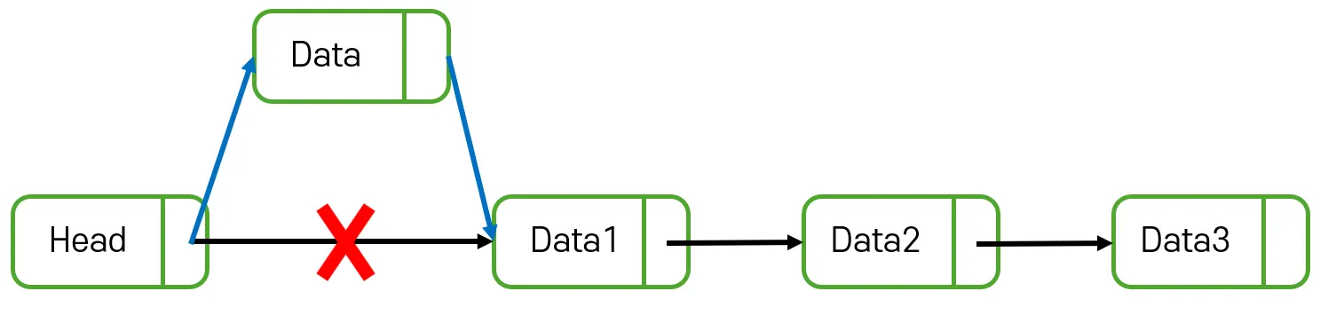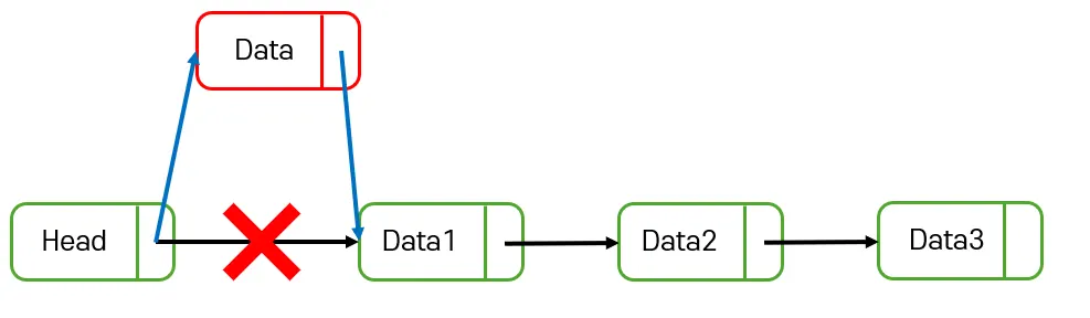 - 새로운 노드가 기존 Head노드(첫 데이터를 가리키는 노드)가 가리키던 노드를 가리키게 한다.