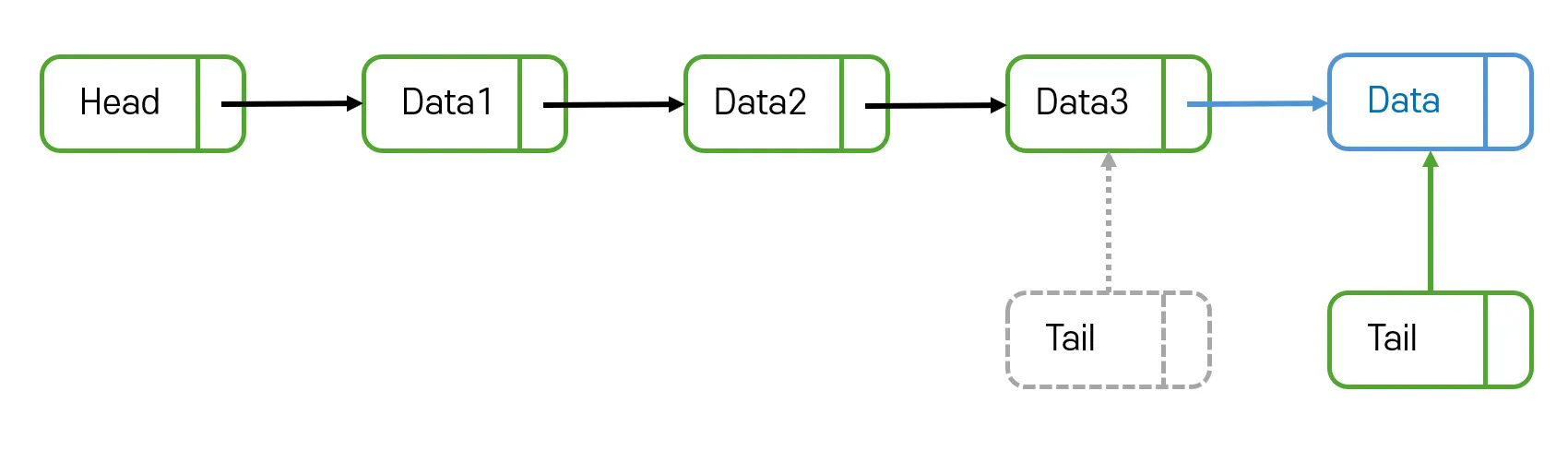 - Tail노드가 새로운 노드를 가리키게 만든다.