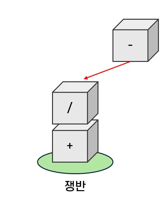 즉, / 연산자보다 +, * 연산이 먼저 쟁반에서 빠져나가야 한다.