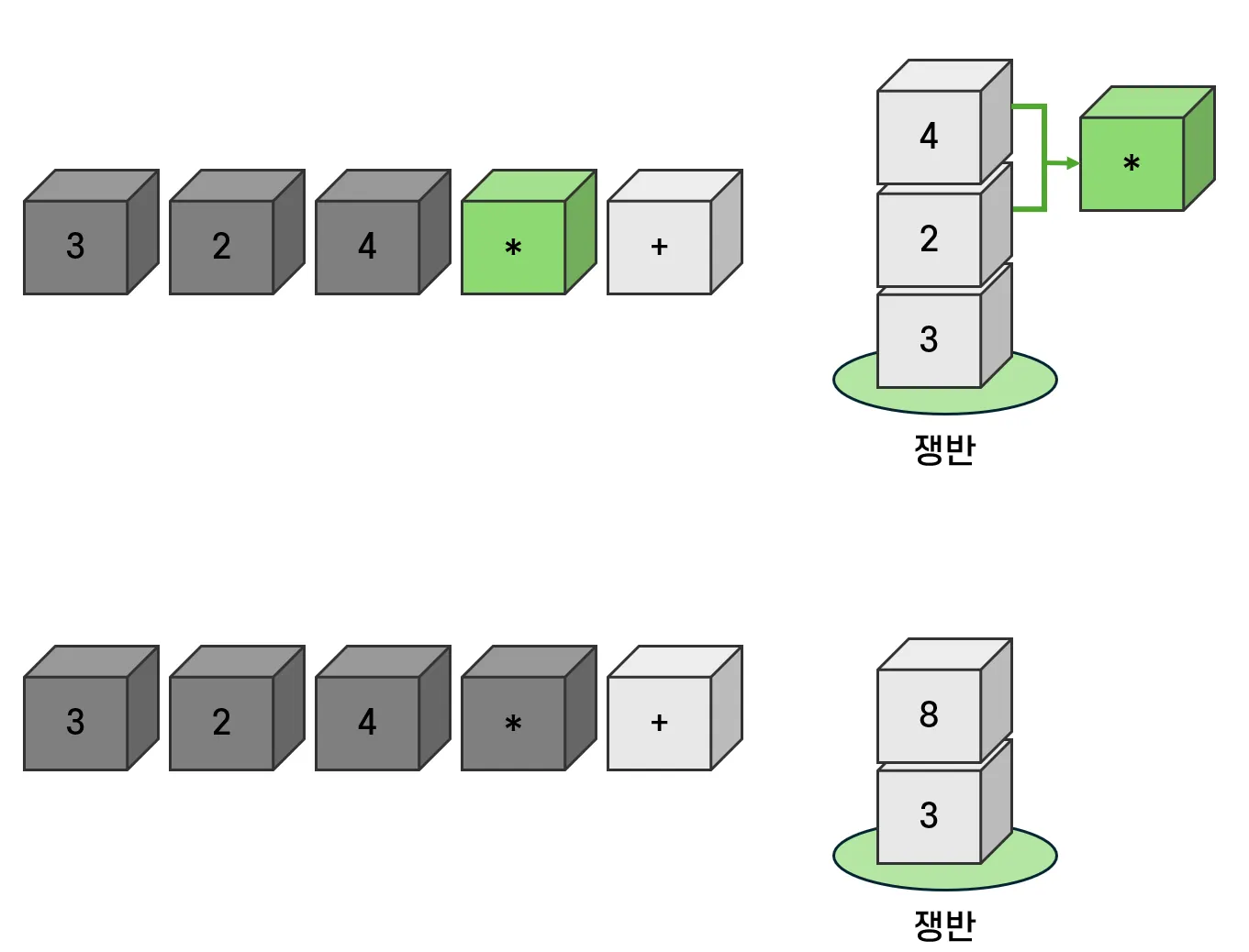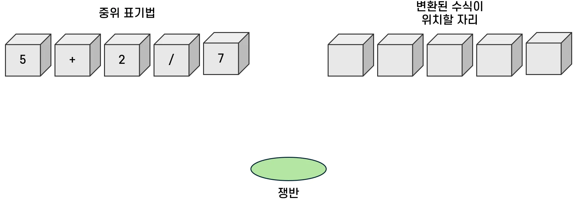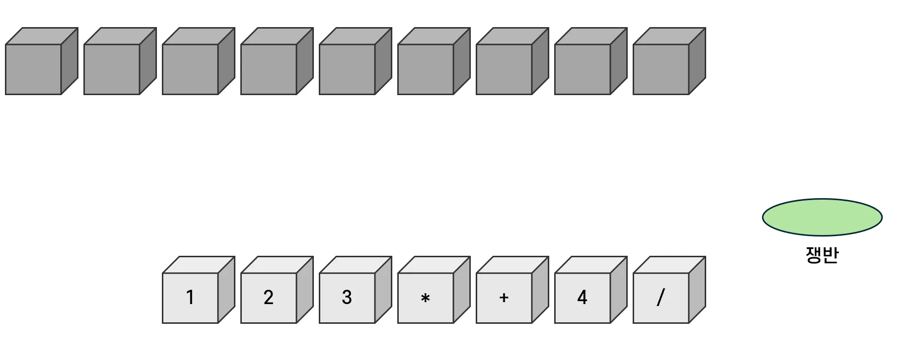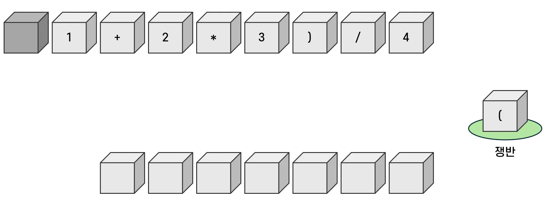 - 따라서 기존 쟁반에 있던 연산자를 옮긴 뒤, 다음 연산자를 위치시킨다.