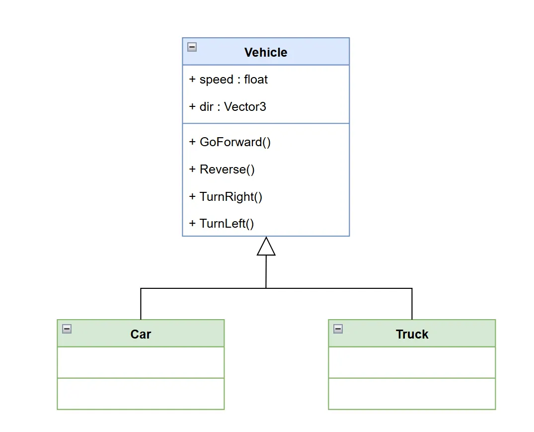 자동차와 트럭 모두 같은 방식으로 움직이며, 다른 탈것을 만든다고 해도 Vehicle 클래스를 상속받으면 기본적인 이동 기능을 그대로 사용할 수 있기에, 아직까지 문제가 있는 코드는 아니다.