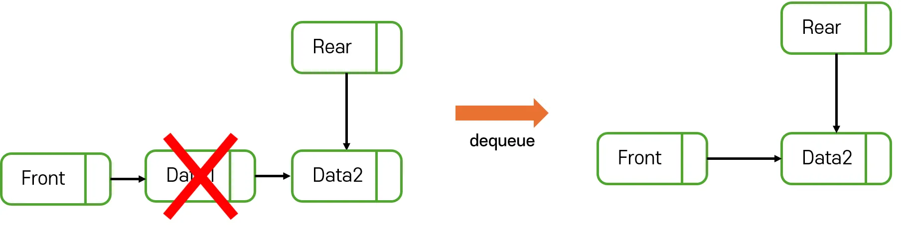 Dequene 과정에서는 신경 써야 할 부분이 F 하나이므로, Enqueue처럼 다른 포인터(R)를 건드릴 필요는 없다.