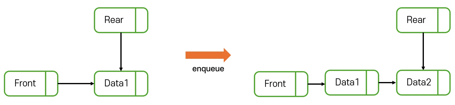 하지만 ”연결 리스트 기반의 큐”는 배열 기반 구조에 비해 이러한 제약이 적기 때문에, 구조적으로는 스택 구현 방식을 어느 정도 재활용할 수 있지만, 아래와 같은 본질적인 동작 방식의 차이는 존재한다.