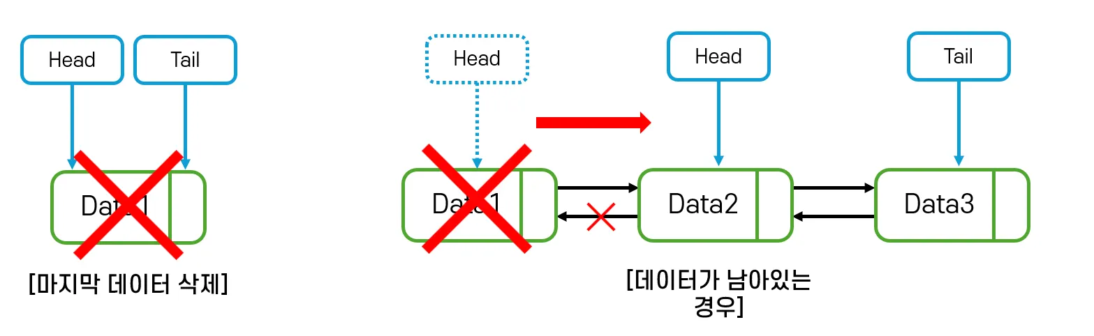 - dq->head == nullptr : 더이상 남아있는 데이터가 없으므로, tail 역시 nullptr로 변경한다.
