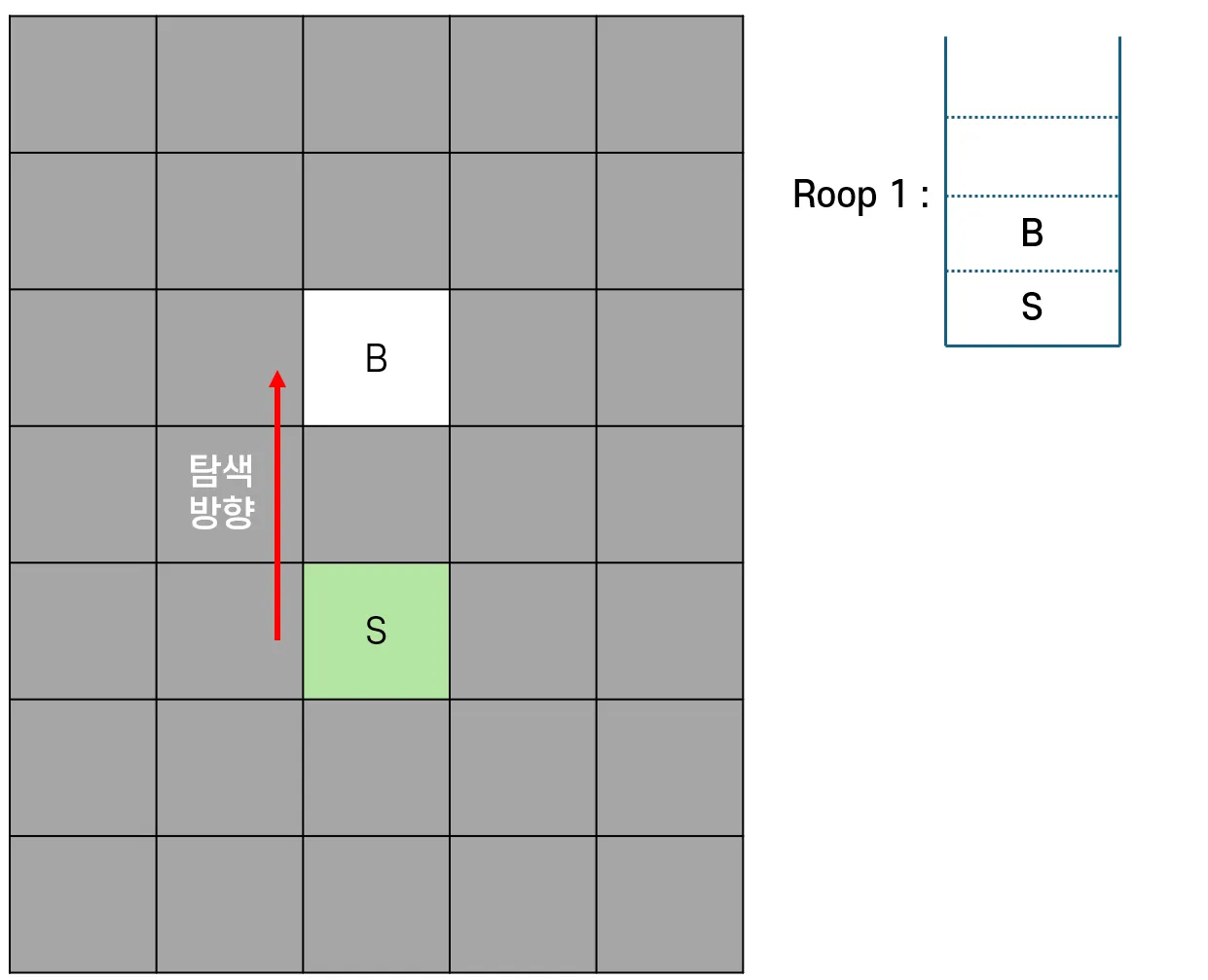 - 만약 어떤 위치(B)에서 더 이상 길을 만들 수 없다면, 자연스럽게 이전 위치(S)로 되돌아가 다른 방향을 탐색하게 된다.